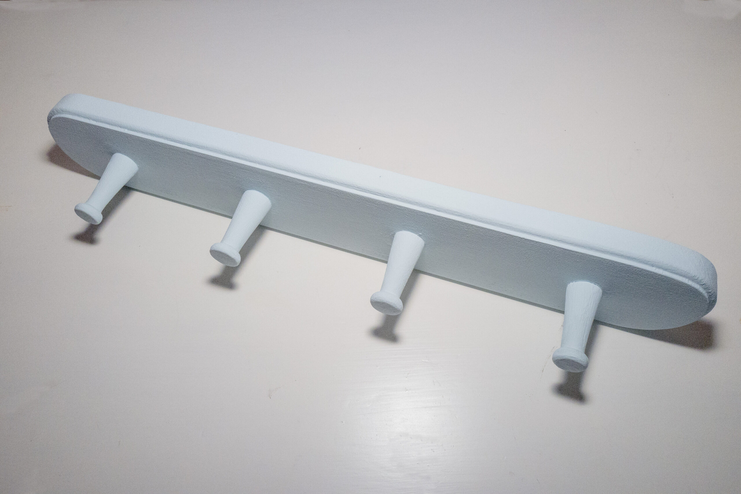 Beautifully hand crafted shabby chic wooden coat and hat rack with 4 pegs finished in duck egg blue